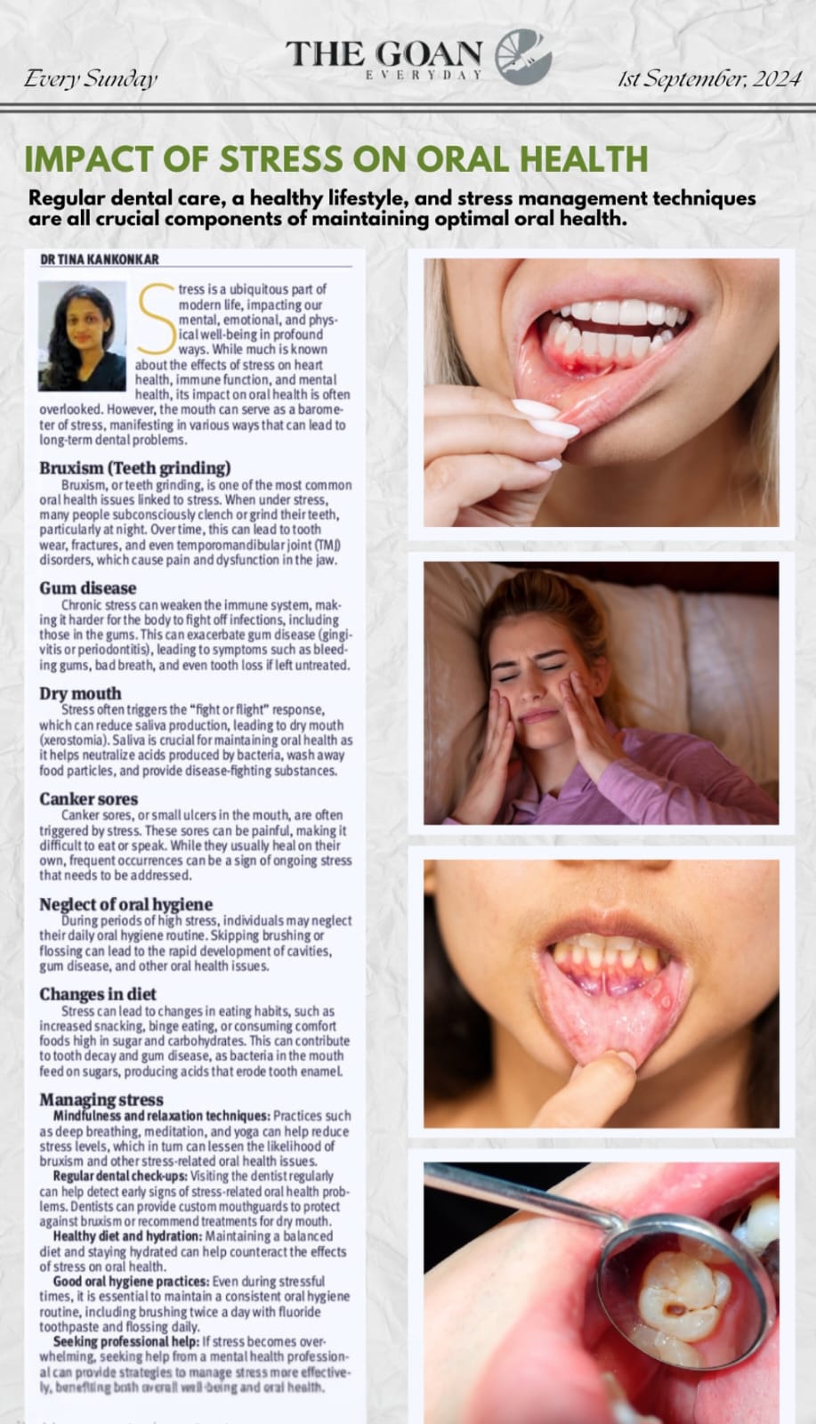 DR. TINA KANKONKAR Dentist, Clinical Cosmetologist